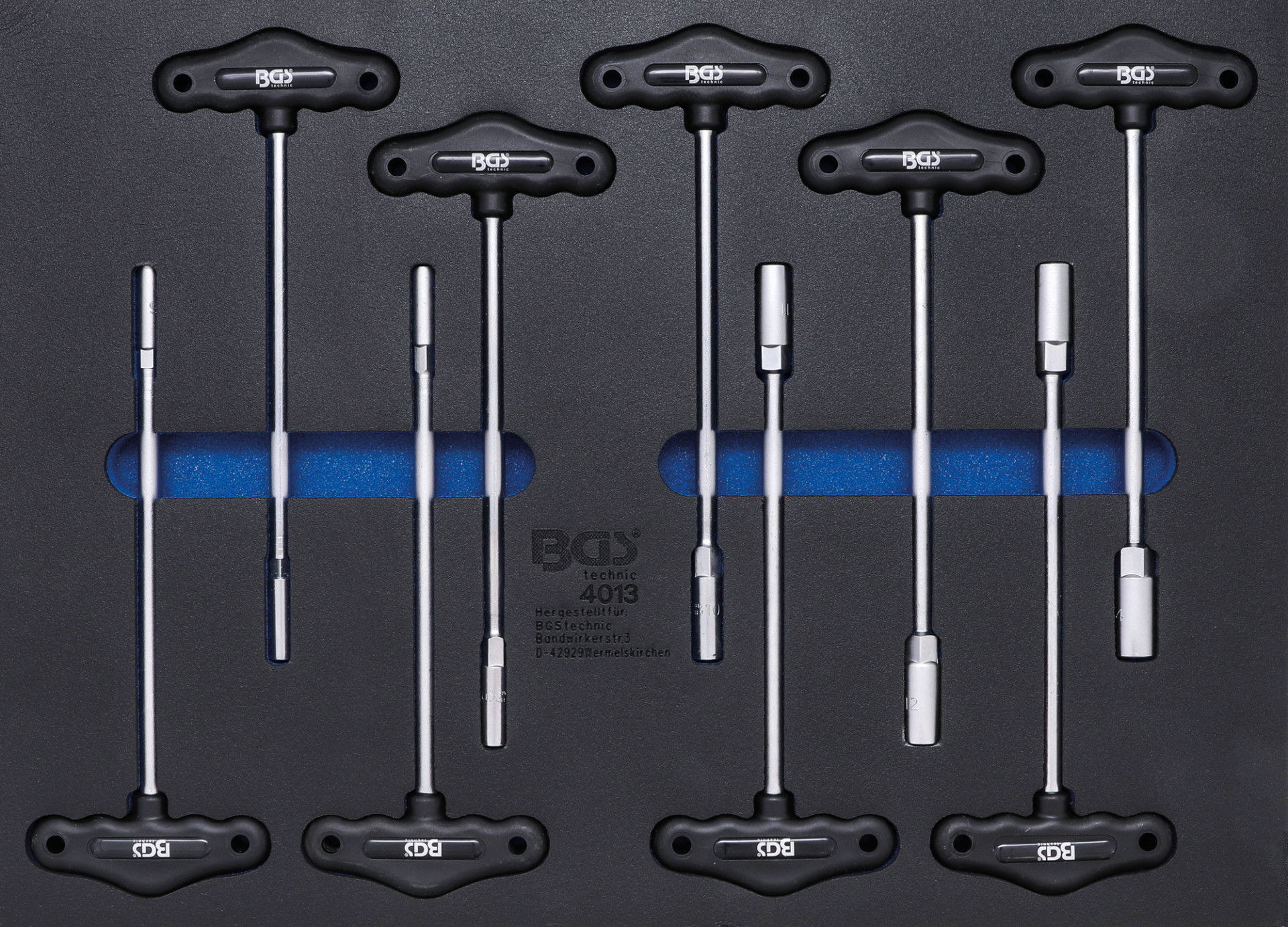 BGS Technic 9-4013 T-fogantyús dugókulcsfejű csavarhúzó készlet, EVA tálcás, 6-lapú, 9 részes